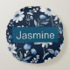 Professionele moderne minimalistische blauwe bloem rond kussen