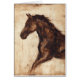 De schoonheid van dit donkere paard wordt perfect vastgelegd door twee eenvoudige kleuren: bruin en beige en de scherpte van de inkt die in dit schilderij wordt gebruikt, maakt het nog realistischer. Deze hedendaagse kunstfoto, die een profiel van een bruine hengst vertegenwoordigt, voegt een personage toe aan elke woonkamer, eetkamer of slaapkamer.