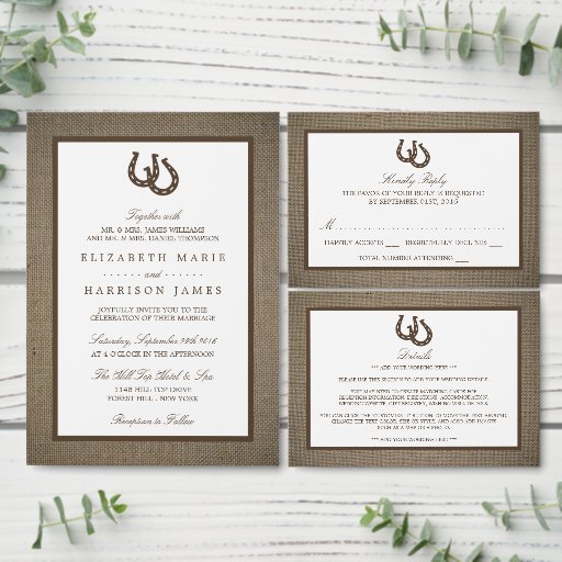 Programme Country Rustic Horseshoe Sur Burlap Mariage