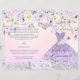 PixDezines élégant robe lilas poussiéreux violet pailleté pour un programme de quinceanera avec des fleurs aquarelles en lilas poussiéreux violet et crème, accentué de papillons et de couleur de fond DIY. Tous les éléments sont modifiables, copiez+collez n'importe quel élément.