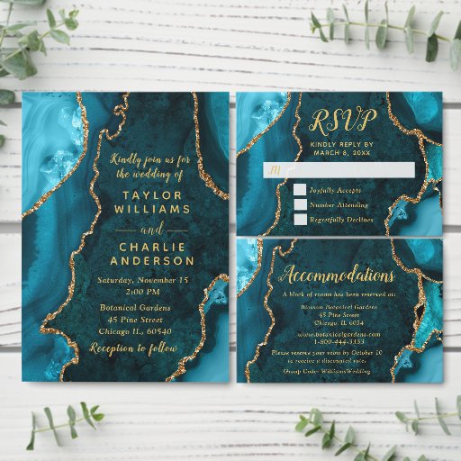 Teal Blue and Gold Agate Marble WeddingConçu par Kirsty W