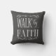 Ce coussin gris d'accent comporte l'expression "promenade par la foi" et un motif de point suisse chic sur le dos. Customisez-le pour changer la couleur pour assortir votre décor à la maison !