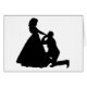 SILHOUETTE NOIR D'UN HOMME SUR UN GENRE, PROPOSANT À L'AMOUR DE SA VIE