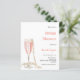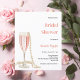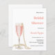 Een moderne, stijlvolle en glamoureuze uitnodiging voor een Parels en Prosecco Vrijgezellenfeest. Een witte achtergrond met een glas, fluit met roze bubbels en parels. De naam is geschreven met een modern handgeschreven stijlschrift. Personaliseer en voeg uw partijgegevens toe. 1 vel = 1 uitnodiging bedrukt rand tot rand.