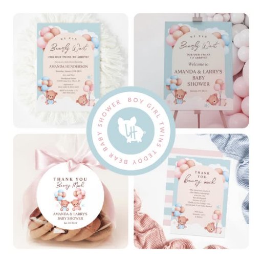 Boy Girl Twins Teddy Bear Baby ShowerConçu par Amanda Cudnik