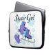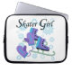 Notre T-shirts de conception de fille de patineur, tasses, sacs, cartes, coussins, horloges murales, souvenirs, sweat - shirts à capuche, et d'autres articles de patinage de thème comporte une paire de patins de bleu et de lavande et des mitaines sur une ficelle entourée par un bon nombre de flocons de neige hivernaux et de texte qui lit la fille de patineur !