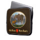 Une mama orignal et son mignon veau avec un lac et des montagnes au loin. Le slogan "Cold Noses (A red heart) Warm Hearts" apparaît également.