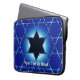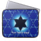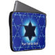 Une simple image fractale aux tons bleus représentant plusieurs instances d'un David magen (Étoile de David) formé par des lignes croisées en verre ou en cristal, l'étoile centrale est remplie de bleu foncé. Ajoutez votre propre texte.