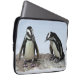 Cette douille d'ordinateur portable comporte deux pingouins africains adorables se tenant sur un rebord rocheux. Ils sont des oiseaux aquatiques et incapables de voler dont les ailes ont les nageoires devenues. Chacun a une rayure noire et des taches noires sur le coffre. Le motif des taches est unique pour chaque pingouin, juste comme les empreintes digitales humaines. Elles ont les glandes roses au-dessus de leurs yeux et les pieds roses et noirs.