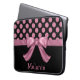 Motif mignon pois rose et noir avec arc et ruban satiné. Ce chic pois rose point iphone 5 coque a un nom personnalisable pour vous permettre de personnaliser facilement.