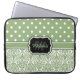 Protection Pour Ordinateur Portable Sage Vert Monogramme Damask Polka Dot