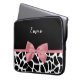 Une girafe noire et blanche branchée imprime une manche portable de 15'' avec un ruban rose girly attaché dans un joli arc. Personnalisez cet élégant design poster de animal en ajoutant votre nom. Image imprimée plate, pas l'arc réel.