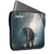 Une pochette d'ordinateur portable avec la photo d'un éléphant asiatique aux oreilles arrondies debout dans une clairière de forêt, regardant vers le spectateur avec la lumière du soleil qui descend à travers la canopée des arbres.