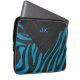 Protection Pour Ordinateur Portable Zèbre noir et bleu avec Monogramme