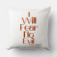 Dit gooi kussen toont de Psalmen 23:4 KJV bijbel vers geschrift "I Will Fear No Evil" in een unieke print lettertype met oranje letters zwarte omtrek plus bijbel citaat. Dit kussen is gemaakt van hoge kwaliteit simplex gebreide stof onze kussens zijn zacht en rimpelvrij de hoes is machinewasbaar.