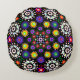 Handgetrokken mandala zwarte, gele, blauwe en paarse stip mandala kussen.
