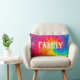Gezinstekst op psychedelische stropdas-kleurstof abstract in een neonregenboogkleurige wervelkolom. De tekst kan worden bewerkt.