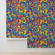 Dit kunstwerk cadeaus een levendige en energieke compositie van wervelende, golvende lijnen in een caleidoscoop van kleuren. Het ontwerp is voorzien van gedurfde, overlappende vormen in elektrische tinten van geel, blauw, roze, paarse en oranje, waardoor een dynamische en vloeiende beweging door het stuk wordt gecreëerd. De golvende vormen en het intense kleurenpalet roepen een gevoel van psychedelie op, dat doet denken aan de kunst uit de jaren zestig en zeventig. Het samenspel van rondingen en contrasten maakt het kunstwerk visueel stimulerend en vol leven.