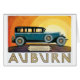 Publicité vintage Auburn Motors avec une illustration cubiste de coup de soleil dans l'arrière - plan. Auburn Automobie Company, Auburn, Indiana. Touché comme "Le plus grand Huit Droite"