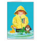 Artiest: Jack Weaver | Meisje met regenjas staat in pudels met kikker, hond en eend