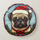 Pug Glas in lood Kerst Rond Kussen