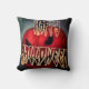 Deze grafische tekening, is digitaal bewerkt, om deze levendige, oranje en zwarte pompoen te verbeteren, met een dreigende, grijze kleur, naar rechts, tegen een blauw-grijze achtergrond, met Happy Halloween, blazoned, aan de voorkant, in macabre, bleek-gekleurd, schrift.