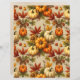 Orange, white, and brown pumpkins with autumn leaves and seeds make a splendid scrapbook paper for autumn. Perfect for Thanksgiving memories! The back is beige, with a faint floral pattern.