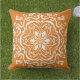 Deze witte mandala zit op een pompoentaart gekleurde achtergrond. De kleur is creatief en warm. Deel van het Collectie Losonieth Mandala.