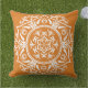 Deze witte mandala zit op een pompoentaart gekleurde achtergrond. De kleur is creatief en warm. Deel van het Collectie Rosenn Mandala.