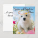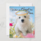 Het ontwerp toont een bichon-puppy op een weide die engelachtig kijkt. De puppy is mijn jongen toen hij jong was.