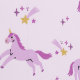 Looking for a dreamy, vibrant wallpaper for your child's room? This design features a soft purple background adorned with playful purple unicorns leaping amidst showers of shooting stars and golden glitter.