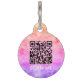 Een schattige en kleurrijke roze waterverf nametag voor je hond of kat! De achtergrond kenmerkt een douaneQR code voor mensen om tot de informatie gemakkelijk toegang te hebben om uw huisdier terug naar u veilig en geluid te krijgen! Pas aan met het monogram en de naam van uw URL en huisdier. Laat je huisdier een beetje show met dit leuke, roze rainbooggradiëntontwerp.