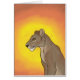 Dit is een digitaal schilderij van een leeuwin met een prachtige Afrikaanse zonsondergang achter haar.