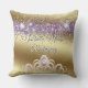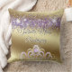 Quinceañera coussin traditionnelle pour la présentation de la tiare ou couronne pour son Mis Quince Anos, élégante parties scintillant violette et design or avec son nom et belle tiara en or et améthyste sur le devant, un court texte sur le dos