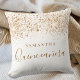 Een kussen voor een Quinceañera, 15-jarige meisjeskamer. Een witte rode achtergrond met faux goudglitter stof. De tekst: Quinceañera wordt geschreven met een groot modern, met de hand geschreven stijlscript. Pas een naam aan en voeg deze toe.