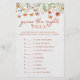 Wilt u een vleugje plezier toevoegen aan uw bohemian baby shower terwijl u ook de kennis van baby essentials van uw gasten test? Als dat zo is, dan is het betoverende "Guess the Price" spel perfect voor jou! Uw gasten zullen de prijzen van verschillende baby items moeten raden, van kleding en beddengoed tot speelgoed en accessoires. Het spel heeft een zachte rustieke achtergrond versierd met delicate wilde bloemen en speelse vlinders, het creëren van een dromerige en uitnodigende sfeer.