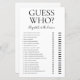 Deze mooie moderne gok? Een vrijgezellenfeest spelplaat is perfect voor elke douche. Dit leuke en gemakkelijke spel is zeker om veel te lachen naar elk vrijgezellenfeest. Geef gewoon een vel aan elke gast (vergeet de pennen niet) en laat het plezier beginnen! Je zult verbaasd zijn over hoeveel dingen mensen weten over de bruid en de bruidegom. Om dit spel uw te maken selecteert u deze sjabloon aanpassen en typt u de naam van de bruid en de naam van de bruidegom.