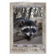 Raccoon omringd met zwarte en witte veren en bloemen. Geschikt voor elke gelegenheid.