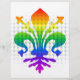 Een regenboogvloour-de-lis met een "fleur-de-lis" achtergrondpatroon.