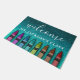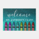 Het lijkt erop dat de blauwe faux-achtergrond van Turquoise gladstrijkt. Regenbooggekleurde kraaien glitter in heet roze, paars, blauw, turquoise, groen, goud, oranje en rood. De vette witte tekst leest "welkom"in het doopvont van het karton. Eenvoudig de naam van de leraar of de titel van het klaslokaal bijwerken. Verkrijgbaar in veel andere kleine achtergrondkleuren en design.