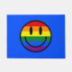 Dit kleurrijke kunstwerk heeft een regenboogsmileygezicht.