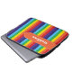 Deze laptop met heldere regenboogstrips heeft een oranje bannerlint met witte stikkende details over de bovenkant. Het is gepersonaliseerd met een naam of een tekst die u wilt toevoegen.