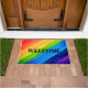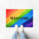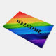 Rainbow Welcome Doormat. Deze levendige doormat is versierd met waterverf strepen in regenboogkleuren en het woord Welkom. U kunt het woord desgewenst wijzigen. Oorspronkelijke Waterverf © Michele Davies.