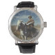 Foto van de eenzame cowboy die op zijn paard rijdt op het gamma is te zien op dit horloge. stijl met een groot uurwerk en echt lederen bandje maakt dit een geweldig cadeau voor Vaderdag, verjaardag, afstuderen of voor de cowboy in je leven!