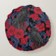 Raven en rozen met donkerblauwe bladeren rond kussen