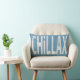 Chillax, froid, contrecoup, le prennent facile, détendent le coussin d'art de mot de planche à roulettes dans le bleu et le beige de denim. L'avant de ce coussin réversible l'indique tout et n'a besoin d'aucune explication. Perfectionnez pour inviter votre invité à enlever une charge. Les lettres graphiques grunges affligées sont dans le beige léger et le blanc, alors que le revers est recoloring du "sablier de planche à roulettes, offrent une idée Co-ordinating inverse. Grand pour votre gameroom, salon ou repaire. Chillax ! !