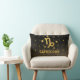 Coussin lombaire personnalisé pour "Capricorn" avec symbole zodiaque doré, étoiles dorées, arrière - plan gris et noir dégradé.