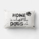 Ce coussin de citation de chien mignon est noir et blanc et a texto maison est où le chien sont avec un dessin de peinture empreinte de patte splatter pour la décoration de maison pour amoureux des chiens partout. Copyright artistique original Ann Powell tous droits réservés.