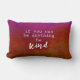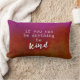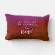 Cette citation coussin a un arrière - plan sombre et affolé dans les tons magenta et rouille avec le texte blanc être gentil pour la décoration maison.