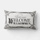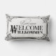 Le cadre et les mots Bienvenue, accueil, Willkommen sont noir de jais. La couleur d'arrière - plan de défaut est un blanc de toile antique neutre doux (également appelé le blanc de toile). Ce même coussin est également disponible dans plus de styles et de couleurs -- cliquez sur juste le bouton de "magasin" ci-dessus pour les voir !